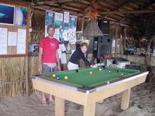 Mozambique The seventeen years of civil war made for some tough roadtrips and the cities were pretty beat up, but with the mines all cleared it wasn't hard at all to enjoy the beaches. Especially with the colorful Portuguess/African blend of food and music. Picture Highlights German friends playing pool at Tofo - thanks again for all those good dinners!
